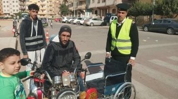 شرطى بالمنوفية يساعد ناخب من ذوى الاحتياجات الخاصة للإدلاء بصوته